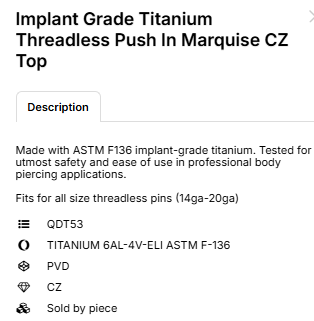 Item: Implant Grade Titanium Marquise Jewels